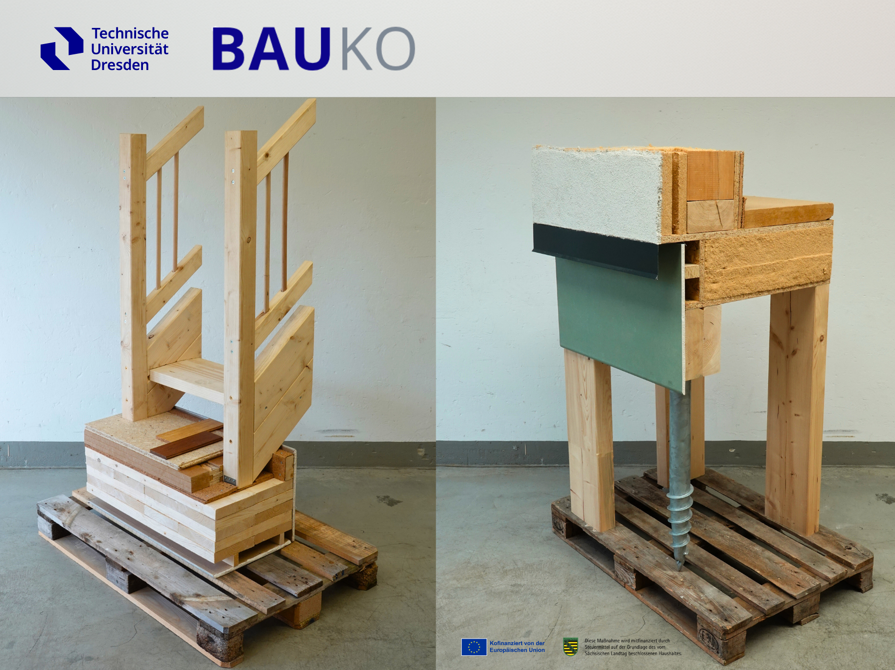 Im Projekt „Sustainable Learning“ besuchen Studierende zunächst eine Baustelle, um konventionelle Bauprodukte und Konstruktionen zu analysieren. Aus diesen Beobachtungen entwickeln sie konstruktive Weiterentwicklungen, die Klima- und Ressourcenschutz in den Mittelpunkt stellen. In kleinen Teams entstehen realistische 1:1-Modelle, die als Lehrmaterial für kommende Jahrgänge dienen und beim Klimafestival ausgestellt werden. So wird nachhaltiges Bauen nicht nur gedacht, sondern gebaut und erlebbar gemacht.